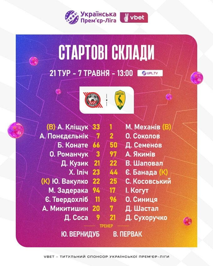 Запасні: Маханьков, Хома, Вілівальд, Плічко, Юрчец, Каменський, Мулик.