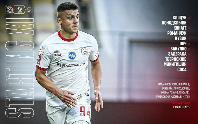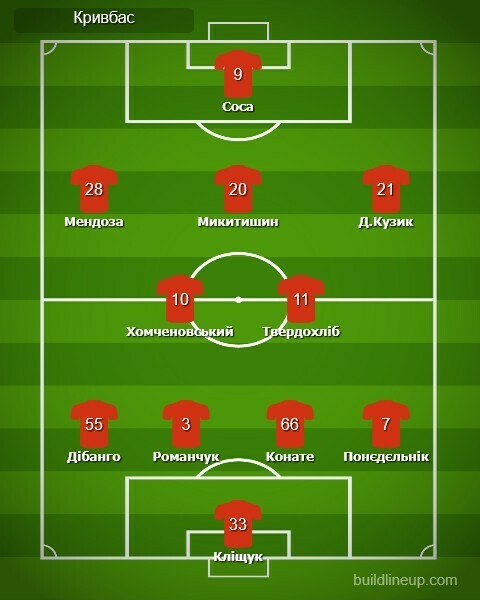 «Кривбас»: Кліщук – Д. Кузик, Романчук, Конате, Понєдєльнік (Бандейра, 80) – Вакулко (Ікенна, 72), Ілич (Луньов, 46) – Микитишин (Ндомбазі, 61), Твердохліб, Задерака – Соса (Гонсалез, 80).
