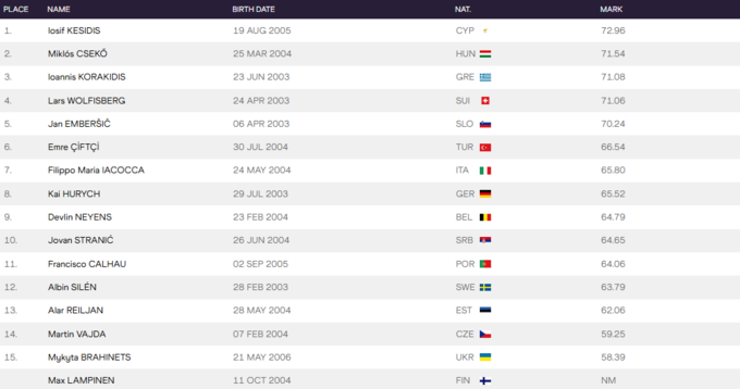 - Йосип Кесідіс (Кіпр) – 72.96