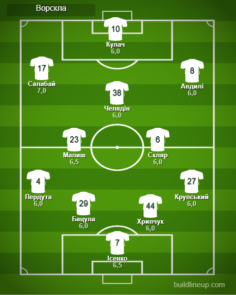 «Ворскла»: Ісенко – Пердута, Бацула, Хрипчук, Крупський – Малиш, Скляр – Салабай (Островський, 82), Челядін (М'якушко, 71), Авдилі (Ндукве, 57) – Кулач (Кане, 71)