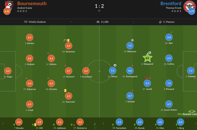 Оцінки матчу Борнмут – Брентфорд від WhoScored