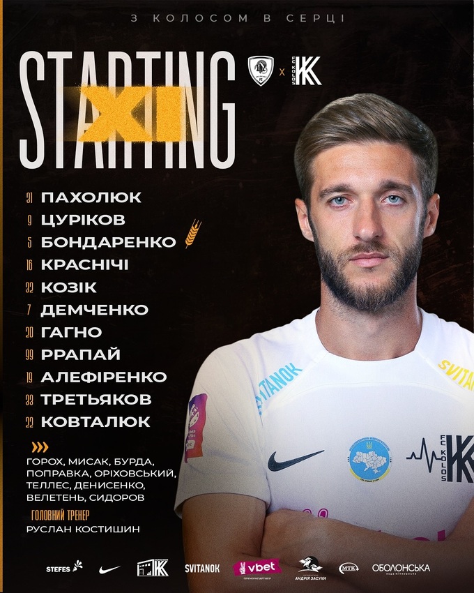 «Колос»: Пахолюк – Цуріков, Бондаренко, Краснічі, Козік – Демченко (Теллес, 73), Гагнідзе (Денисенко, 85) – Алефіренко (Велетень, 46), Ррапай, Третьяков – Ковталюк (Сидоров, 73).