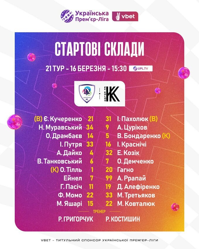Новий клуб Романа Григорчука на старті весняної частини сезону вимучив перемогу над «Рухом» (1:0), і на цьому все – далі були дві поразки для «бузкових». Водночас ситуація для «колосків» була ще гіршою, і вони програли всі три гри, тому Олександр Поздєєв більше не працює головним тренером «Колоса». Замість нього повернувся Руслан Костишин, і тепер йому належить повертати клуб на той рівень, з якого він свого часу пробивався в єврокубки. Хоча в цьому сезоні «чорно-білим» хоч би не вилетіти.