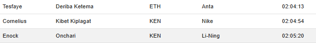 - Тесфайє Деріба (Ефіопія) – 02:04:13