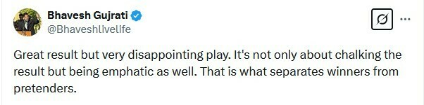 Bhavesh Gujrati: Чудовий результат, але гра дуже розчаровує. Йдеться не лише про те, щоб здобути результат, але й про те, щоб бути рішучим. Саме це відрізняє переможців від претендентів.
