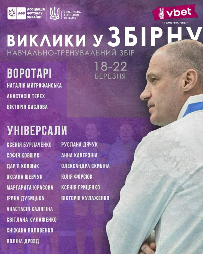 Головний тренер жіночої збірної України з футзалу Олег Шайтанов викликав на збори наступних гравців.