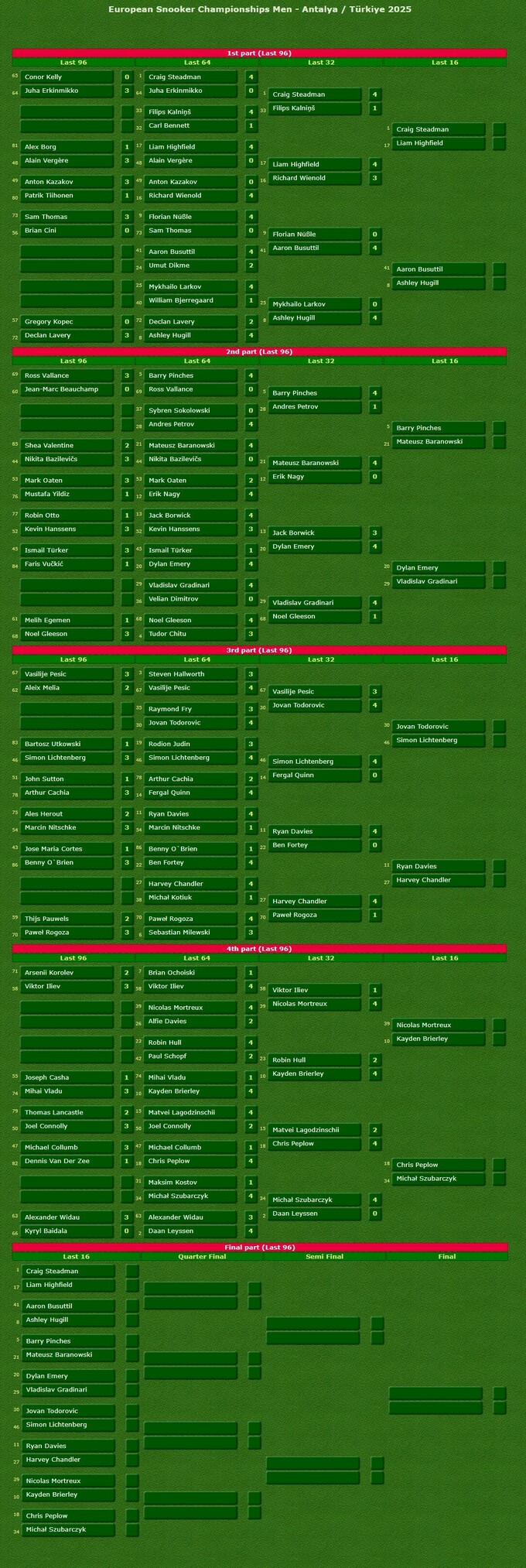 Жоден з українських снукеристів не зумів вийти до 1/8 фіналу чемпіонату Європи 2025 зі снукеру під егідою EBSA, який проходить у турецькій Анталії.