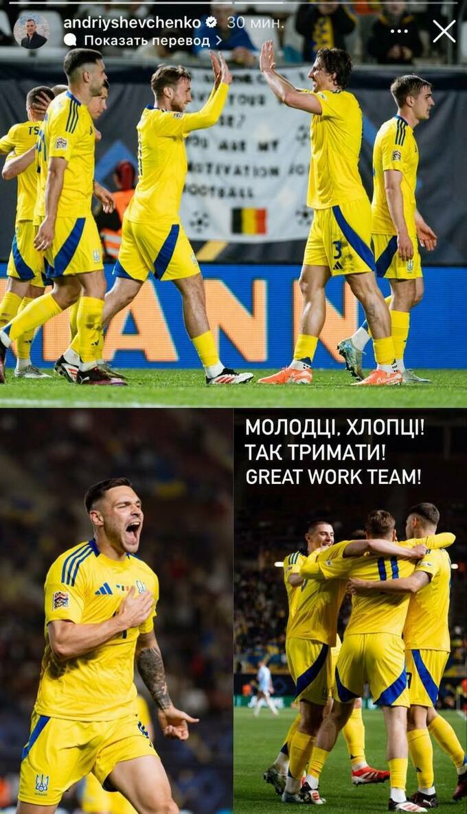Очільник УАФ Андрій Шевченко лаконічно відреагував на перемогу підопічних Сергія Реброва: «Молодці, хлопці. Так тримати. Чудова робота, командо», – написав Андрій.