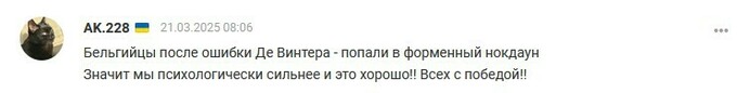 AK.228: Бельгійці після помилки Де Вінтера - потрапили у формений нокдаун. Значить ми психологічно сильніший і це добре!! Усіх із перемогою!!
