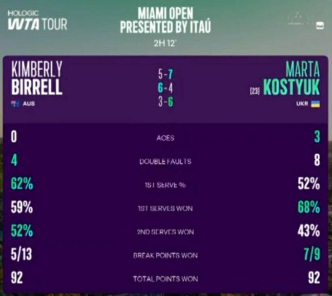 Test Passed ✅@marta_kostyuk comes out on top following a fierce three setter against Birrell.#MiamiOpen pic.twitter.com/AIceClPraF