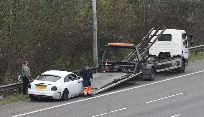 Маркус Решфорд потрапив у неприємну ситуацію, коли його Rolls-Royce за £700,000 довелося евакуювати з автомагістралі після вибуху шини.