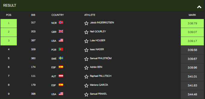 1. Якоб Інгебрігтсен (Норвегія) – 3:38.79