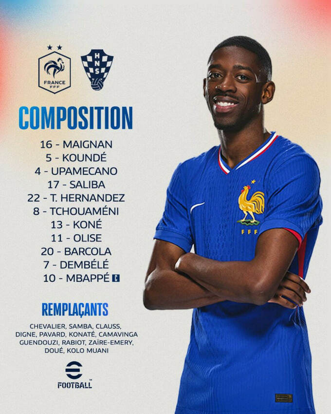 23 березня відбудеться матч-відповідь 1/4 фіналу Ліги націй 2024/25 між збірними Франції та Хорватії.