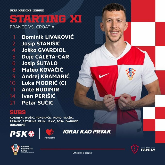 Оприлюднено стартові склади на матч 1/4 фіналу ЛН Франція – Хорватія