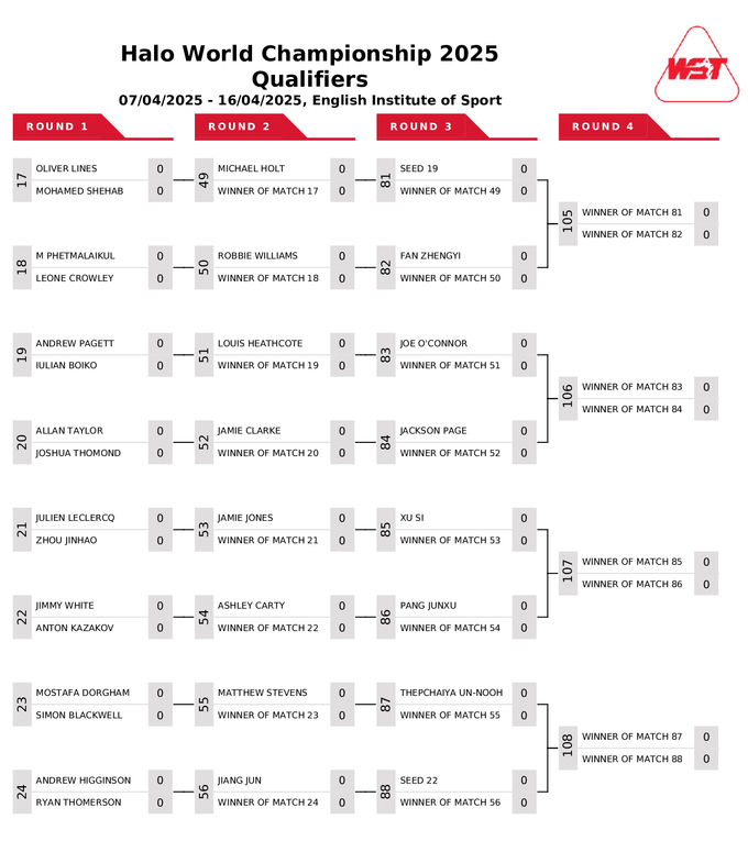 Кваліфікаційні змагання ЧС-2025 відбудуться з 7 до 16 квітня в Англійському інституті спорту в Шеффілді. Гравці змагатимуться за місця в 1/16 фіналу. Щоб потрапити в фінальний етап, українцям потрібно пройти чотирьох суперників.