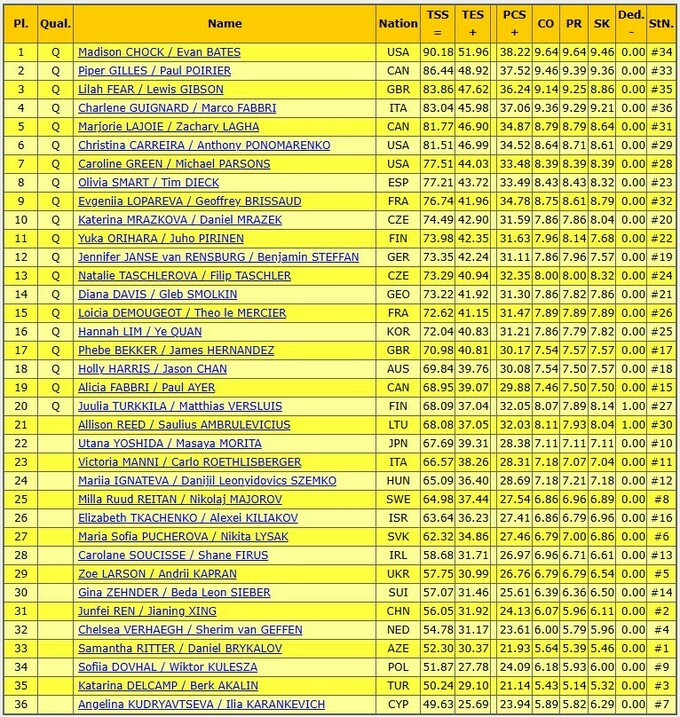 Зрештою Ларсон та Капран посіли 29-те місце серед 36 учасників ритм-танцю. Лідерами змагань є американці Медісон Чок та Еван Бейтс.