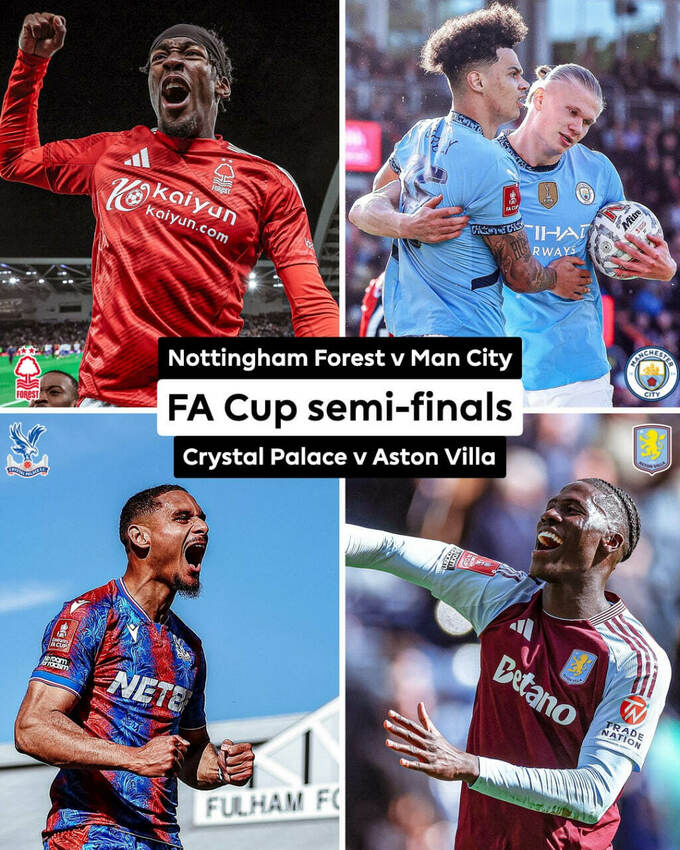 У півфіналі Манчестер Сіті зіграє з Ноттінгемом, а Астон Вілла зустрінеться з Крістал Пелас. Зустрічі відбудуться 26 і 27 квітня. Ігри пройдуть у Лондоні на стадіоні Вемблі.