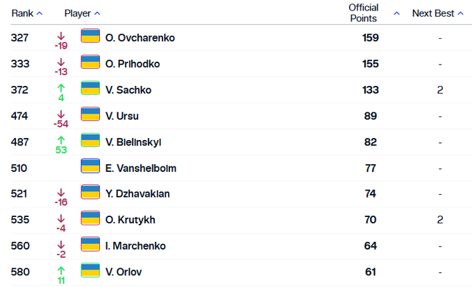 Зрозуміло, що українцям не світить ATP Finals, але заради інтересу уточнимо і їхні місця: Олег Приходько (на жаль, з українським паспортом) – 270-й, Віталій Сачко («відзначився» грою з Приходьком в одній парі) – 299-й, Олександр Овчаренко – 357-й.