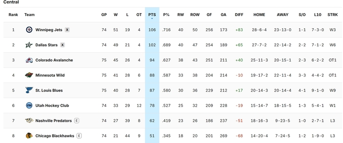 Даллас, який уже вийшов у плей-оф, обіграв Сіетл і продовжує гонитву за лідером конференції Вінніпегом. Зірки відстають від Джетс на чотири очки.