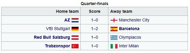 У півфіналах зіграють: АЗ Алкмар – Барселона, РБ Зальцбург – Трабзонспор