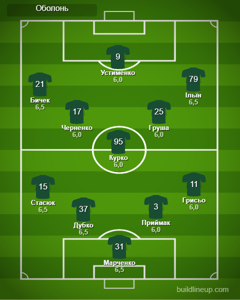 «Оболонь» (заміни): Блізніченко – 6,0, Мороз – 6,0, Суханов – 6,0, Слободян – 6,0, Карась – б/о