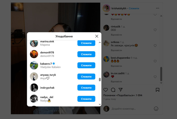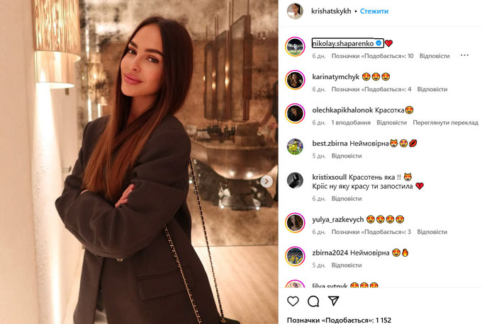 Вінгер київського «Динамо» Владислав Кабаєв лайкнув крайню публікацію дочки Максима Шацьких – Христини.
