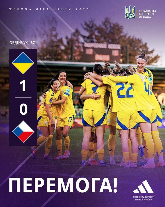 Україна здобула третю перемогу поспіль у групі B4 жіночої Ліги націй. Синьо-жовті виграли матч проти Чехії (1:0).