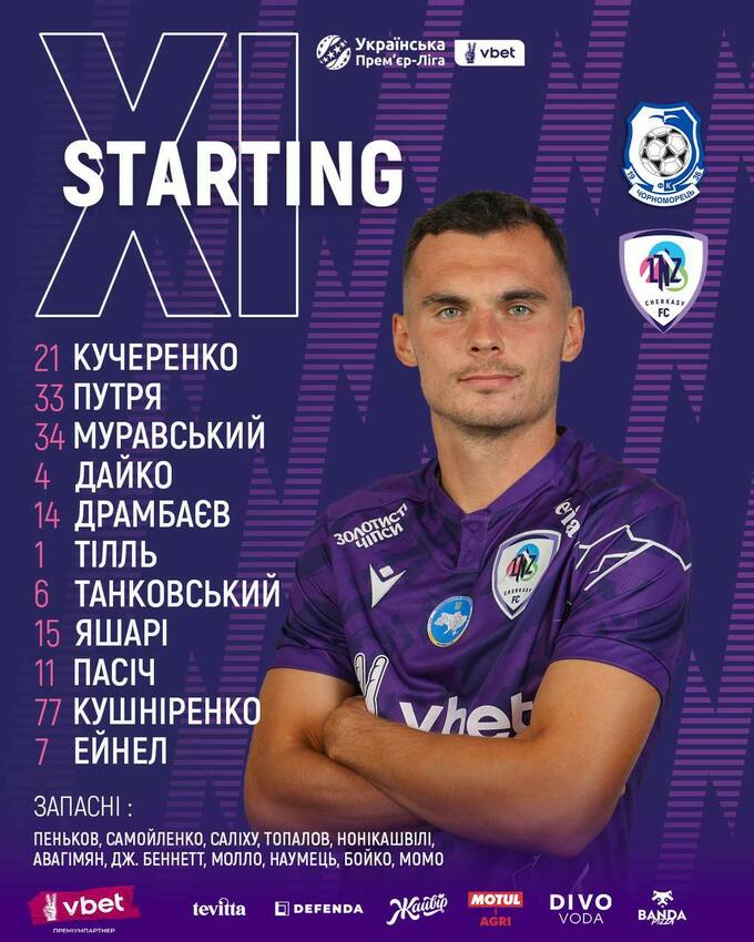 Стартові склади на матч «Чорноморець» – ЛНЗ