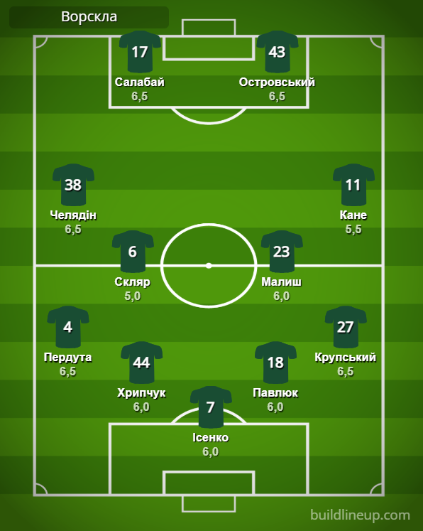 «Ворскла»: Ісенко – Пердута, Хрипчук, Павлюк, Крупський – Челядін (Ндукве, 56), Скляр, Малиш, Кане (Авдилі, 63) – Салабай (Нестеренко, 89), Островський (Ієде, 56).