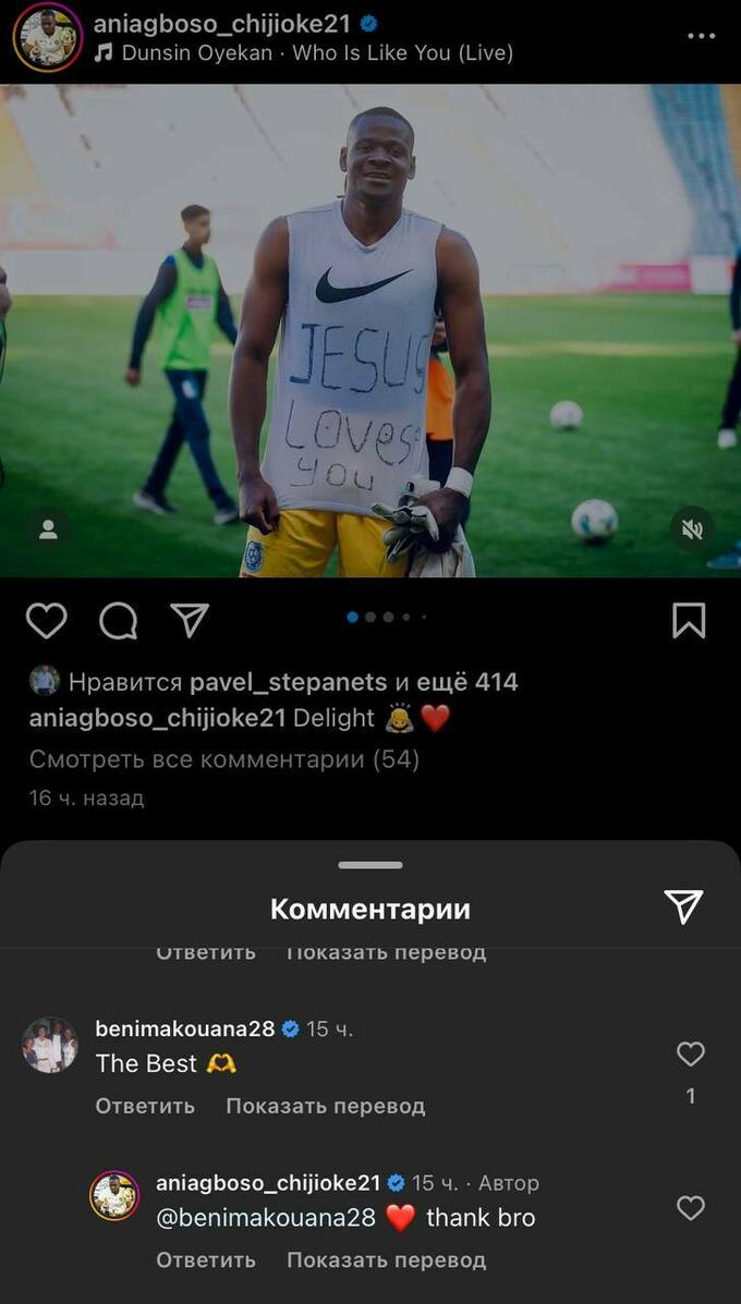 Після гри нігерієць поділився емоціями з фанатами, опублікувавши допис в Instagram: «Насолода 🙇❤️», лаконічно відреагував нігерієць.