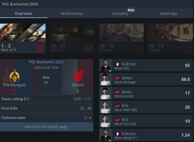 Попри невдачу в першій грі, 3DMAX проявили характер, особливо на Anubis, де домінували на Т-стороні. У The MongolZ провалилися майже всі гравці, зокрема Айуш «mzinho» Батболд і Содбаяр «Techno» Мунхболд.