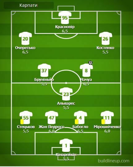 «Карпати»: Кінарейкін, Стецьков, Жан Педросо, Бабогло, Мірошніченко, Альварес, Чачуа, Очеретько (Підлепенець, 84), Бруніньйо (Танда, 69), Костенко, Краснопір (Ігор Невес, 69)