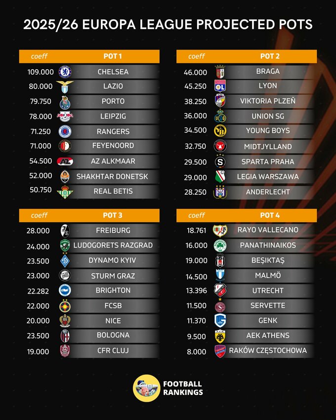 Ліга Європи 2025/26. Прогнозовані кошики посіву