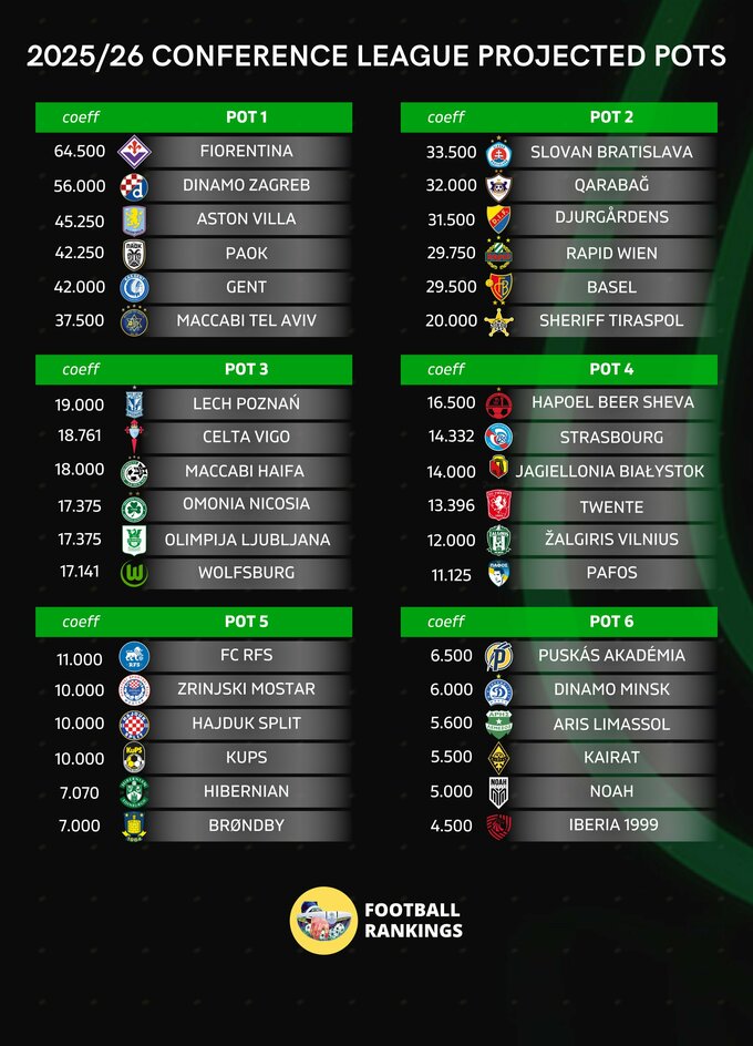 Ліга конференцій 2025/26. Прогнозовані кошики посіву