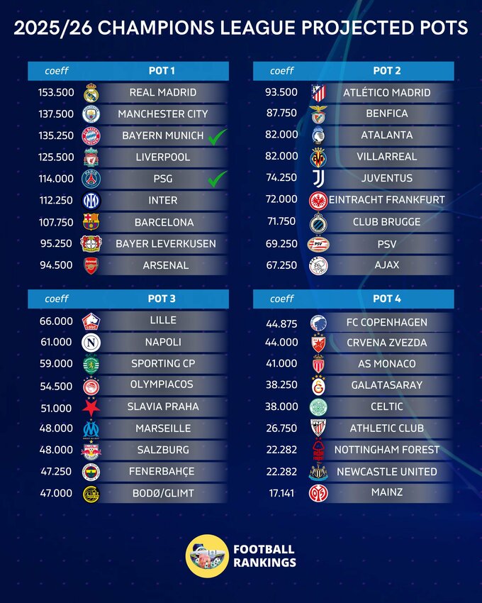 Ліга чемпіонів 2025/26. Прогнозовані кошики посіву