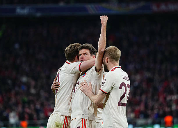 Перший тайм пройшов під контролем «Баварії», але переможцями пішли гості: голом після відмінної комбінації на 38-й хвилині відзначився Лаутаро Мартінес. Дуже небезпечний момент був у середині першого тайму в Гаррі Кейна, але англієць влучив у штангу. За рахунку 0:1 команди пішли на перерву.