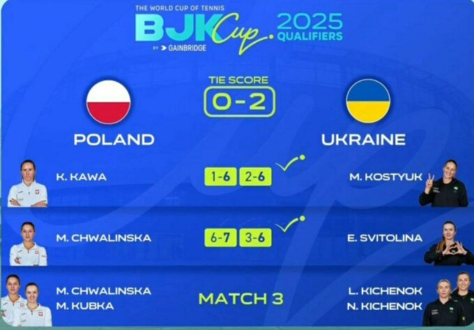 11 квітня збірна України грає проти команди Польщі у Кваліфікації Кубка Біллі Джин Кінг 2025.