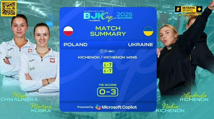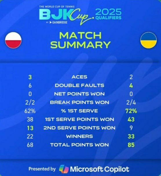 11 квітня збірна України зіграла проти команди Польщі у Кваліфікації Кубка Біллі Джин Кінг 2025.