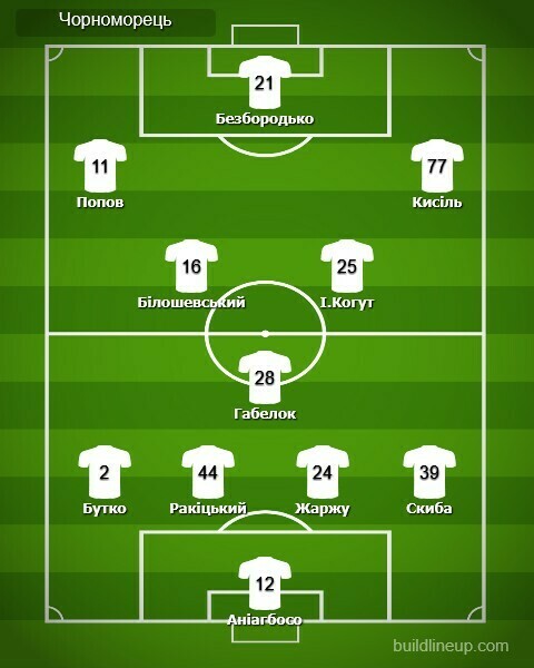 «Чорноморець»: Аніагбосо, Ракіцький (Раян, 66), Жаржу Мозес, Скиба, Бутко, Кисіль, Габелок (Лацабідзе, 66), Білошевський, Попов (Тоїров, 78), Безбородько (Янаков, 40), І.Когут (Мустафаєв, 78)