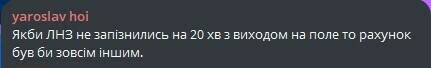 yaroslav hoi: Якби ЛНЗ не запізнились на 20 хв з виходом на поле то рахунок був би зовсім іншим.