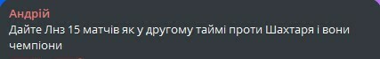 Андрій: Дайте ЛНЗ 15 матчів як у другому таймі проти Шахтаря і вони чемпіони.