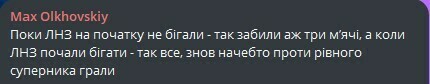 Max Olkhovskiy: Поки ЛНЗ на початку не бігали - так забили аж три мʼячі, а коли ЛНЗ почали бігати - так все, знов начебто проти рівного суперника грали.