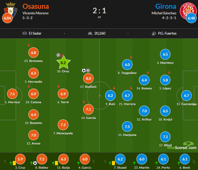 Оцінки WhoScored за матч Осасуна – Жирона (2:1)