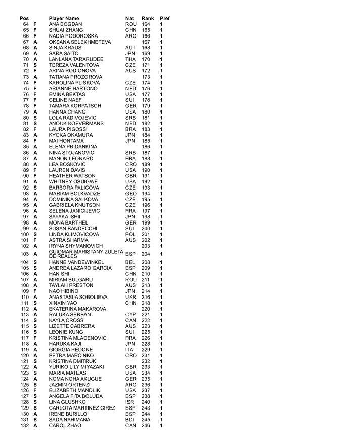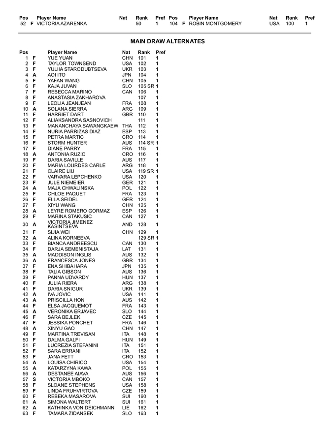 Юлія Стародубцева (WTA 103) знаходиться на третій позиції в альтернативному списку.