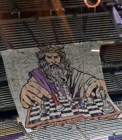 На банері фанів галактикос – мотив гри у шахи. Завдання – збити фігуру червоно-білого кольору, який традиційно використовують каноніри.