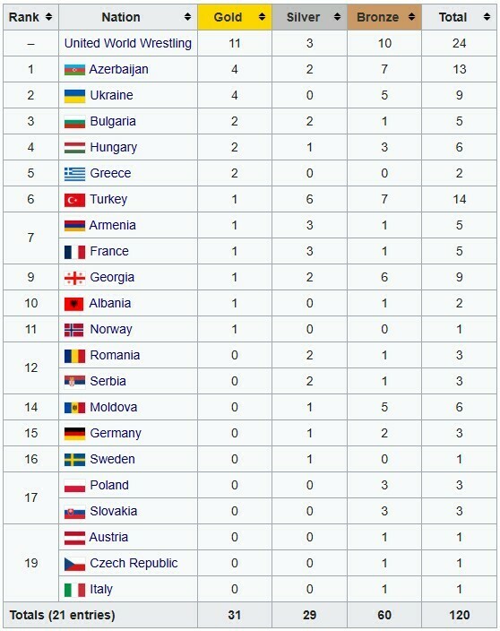 Більше нагород, ніж в української збірної, взяла лише команда Азербайджану – 13 медалей (4–2–7).