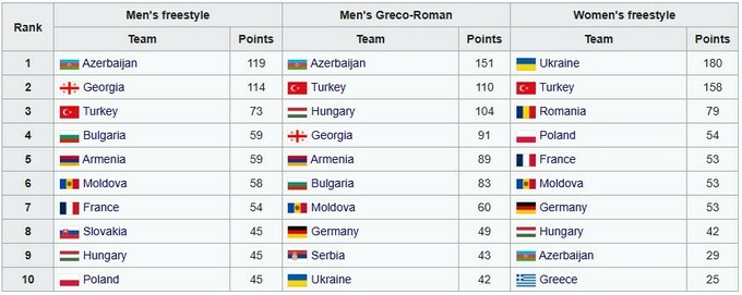 За підсумками змагань у жіночій боротьбі Україна випередила Туреччину, упевнено посівши перше місце в командному рейтингу.