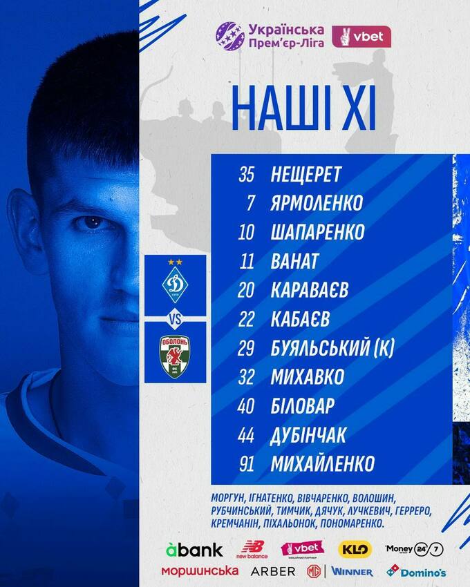 Запасні: Федорівський, Рибка, Осман, Грисьо, Черненко, Суханов, Тарануха.