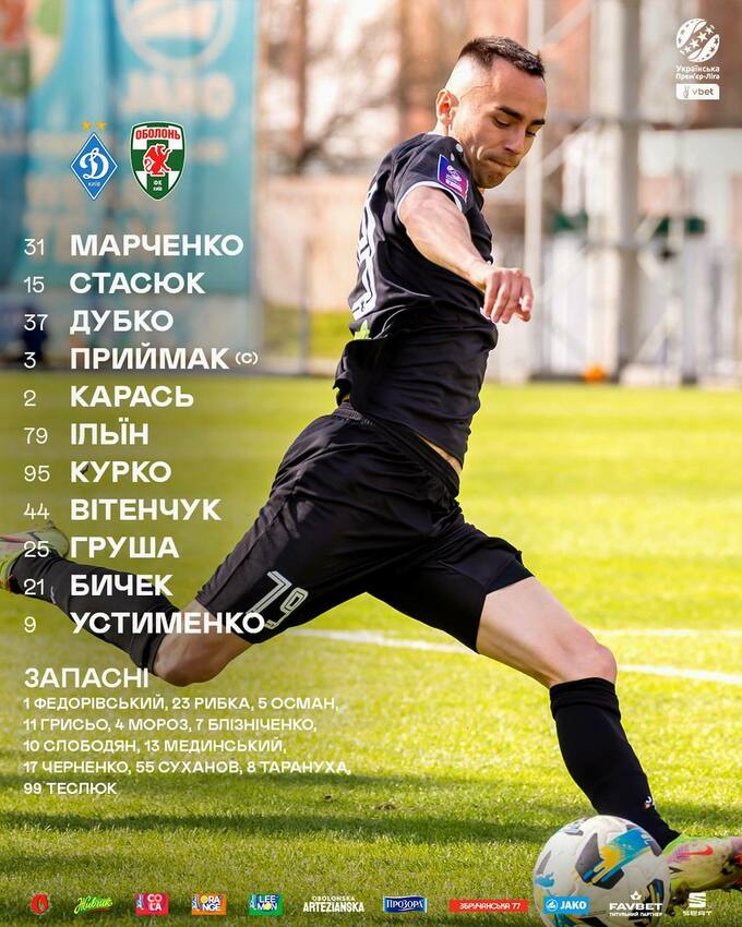 «Оболонь»: Марченко – Стасюк, Дубко, Приймак, Карась, Ільїн – Вітенчук (Мороз, 63), Курко (Слободян, 63), Груша (Мединський, 77) – Бичек (Блізніченко, 64), Устименко (Теслюк, 46).