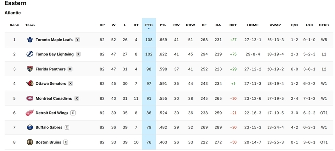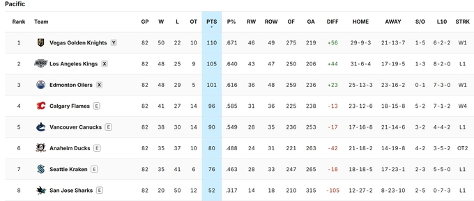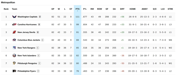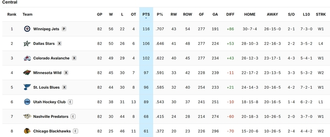 Відзначимо, що найкращою командою регулярки став Вінніпег, який набрав 116 очок і випередив Вашингтон (111) і Вегас (110). Свої дивізіони виграли Торонто, Вашингтон, Вінніпег і Вегас.